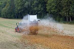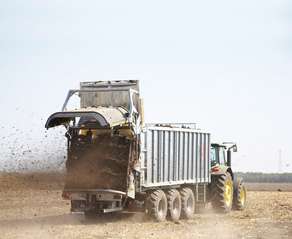 撒施装置跟竖排滚筒的结合显示出强大的撒施能力-非常适用于在青储饲料储存场中作业
